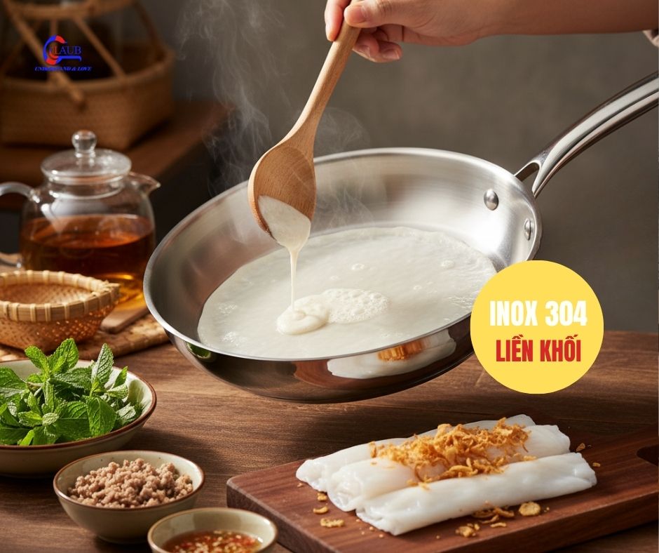 Chảo Inox 3 lớp Glaub: Giải pháp tối ưu cho món bánh cuốn hoàn hảo