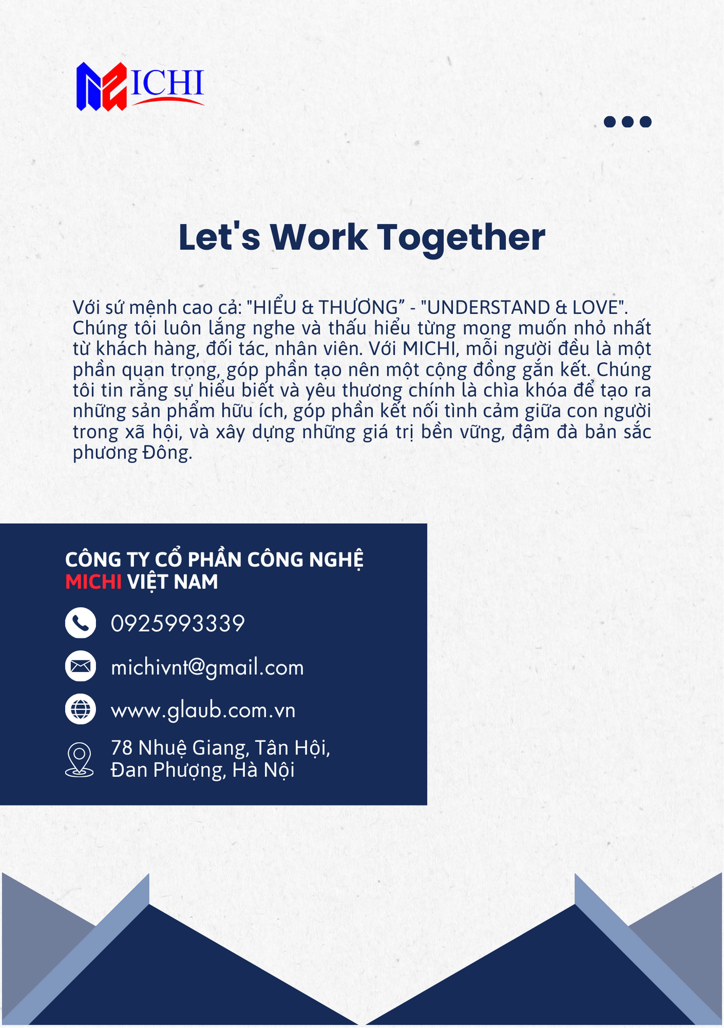 Sau hơn 3 năm nghiên cứu, phát triển và hoàn thiện, vào tháng 5 năm 2024, Công ty Cổ phần Công nghệ MICHI Việt Nam chính thức ra đời, đánh dấu sự ra mắt của thương hiệu Glaub. MICHI Việt Nam định hướng chuyên sâu trong lĩnh vực sản xuất và kinh doanh đồ gia dụng, với cam kết không ngừng đổi mới và nâng cao chất lượng cuộc sống cho người Việt.